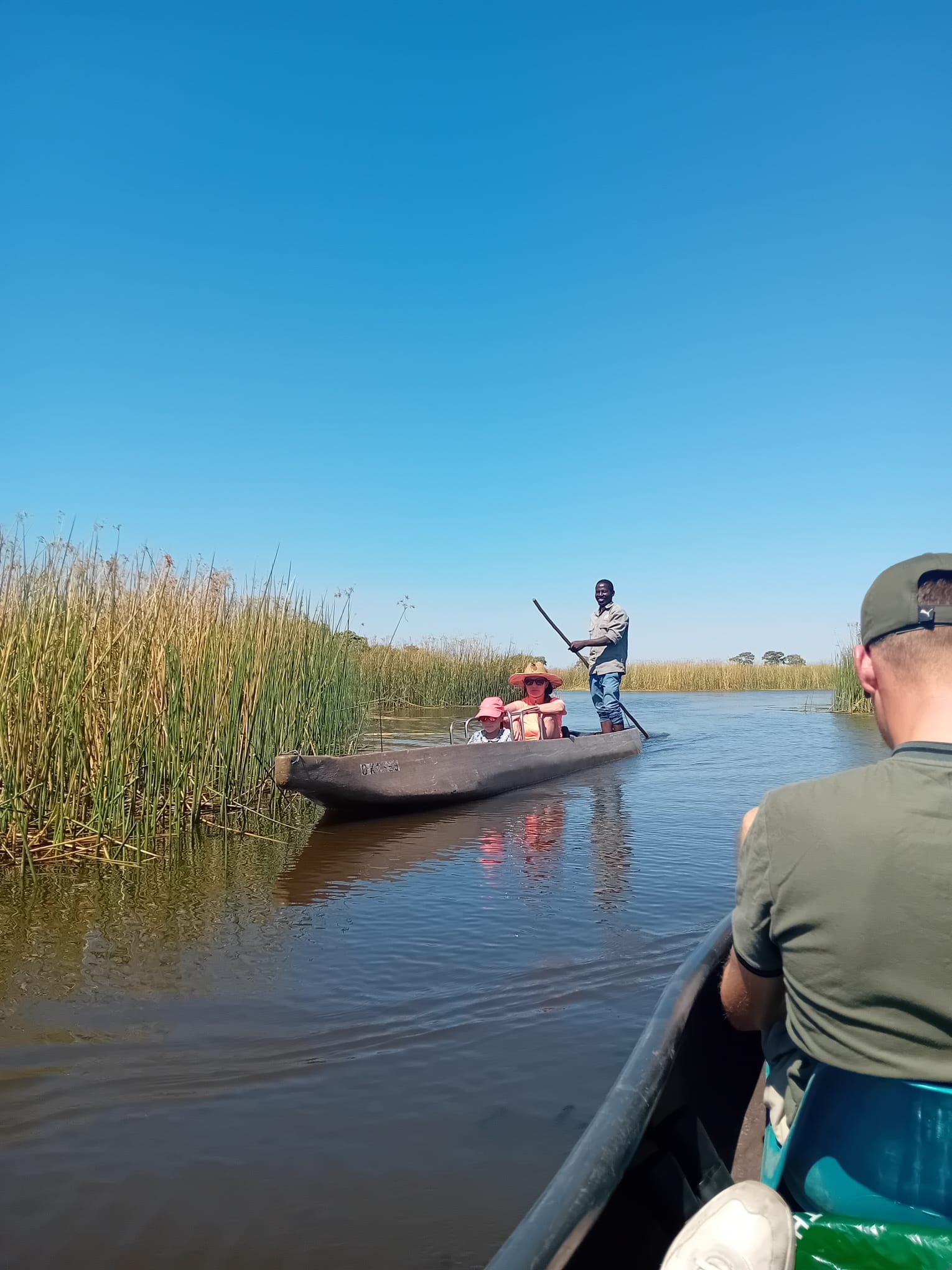 Guided Mokoro Excursions Glide silently through crystal-clear channels and lily‑dotted lagoons in a traditional mokoro, poled by expert local guides. From this peaceful vantage point, you’ll encounter the Delta’s wildlife at eye level, elephants feeding along the banks, red lechwe bounding through the shallows, and an astonishing array of birdlife flitting between the reeds.